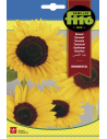 Planta compuesta caracterizada por su tallo estilizado, piloso, con hojas anchas acorazonadas y capítulo floral en colores vivos desde el amarillo al rojo sanguíneo y bronceado.
