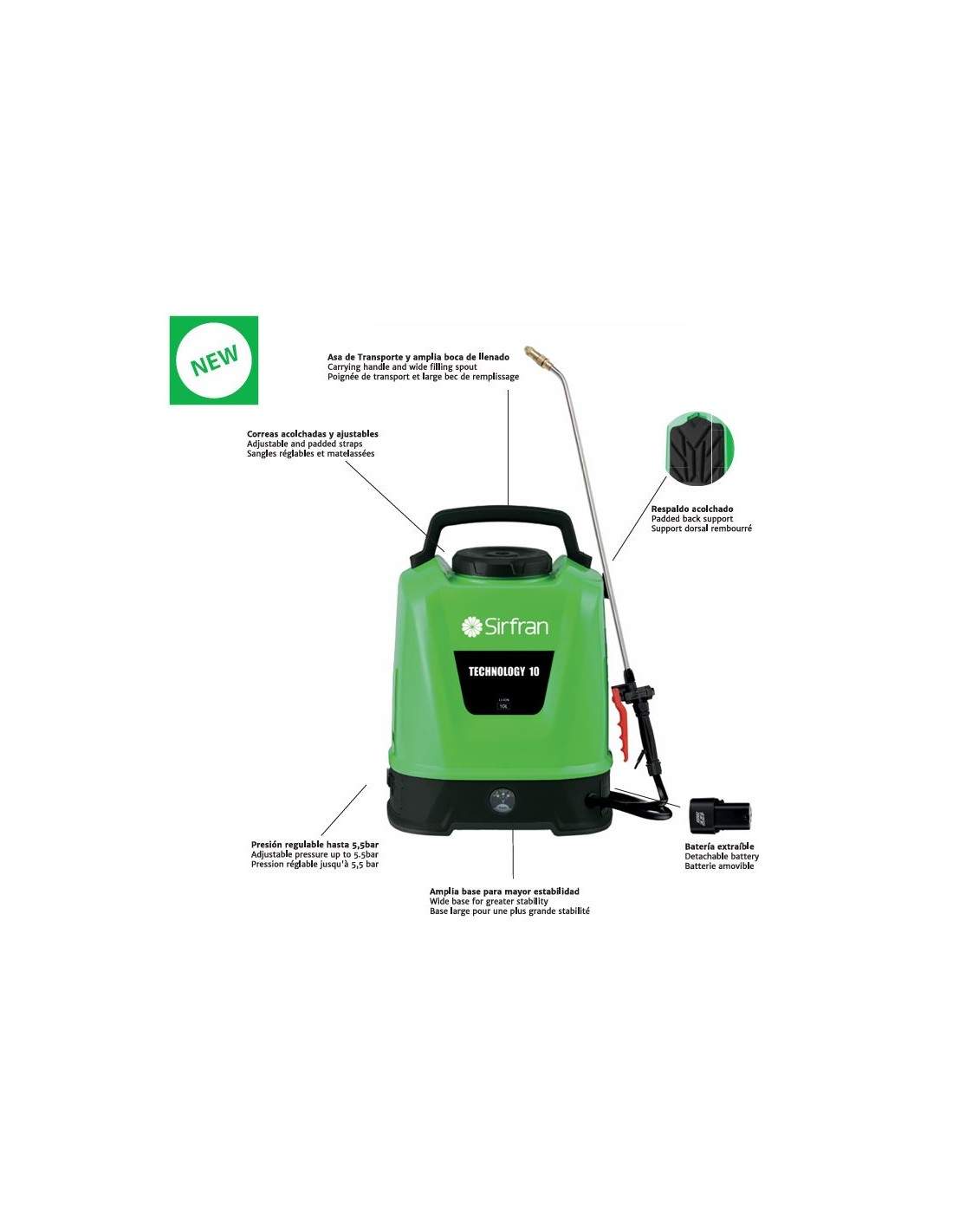 Su diseño ergonómico facilita su uso prolongado sin fatiga. Además, su sistema de presión manual proporciona un control preciso del flujo, adaptándose a diferentes necesidades de pulverización. Es una herramienta versátil, recomendada tanto para uso doméstico como profesional en el mantenimiento de cultivos y jardines.